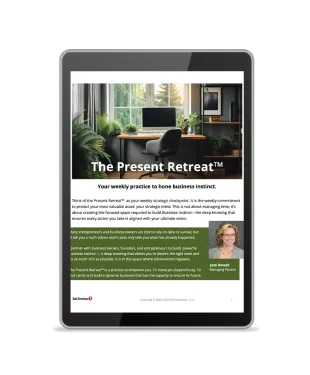 The Present Retreat™ is a simple, powerful weekly practice for protecting your most valuable asset: your time to think strategically. This isn't about adding another meeting to your calendar; This is the guide you will use to sharpen your most critical leadership tool: your Business Instinct.